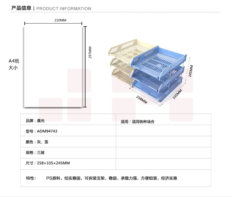 晨光(M&G)三层镂空收纳文件座 三层文件盘/文件框栏桌面文件置物架 ADM94743 (灰色)