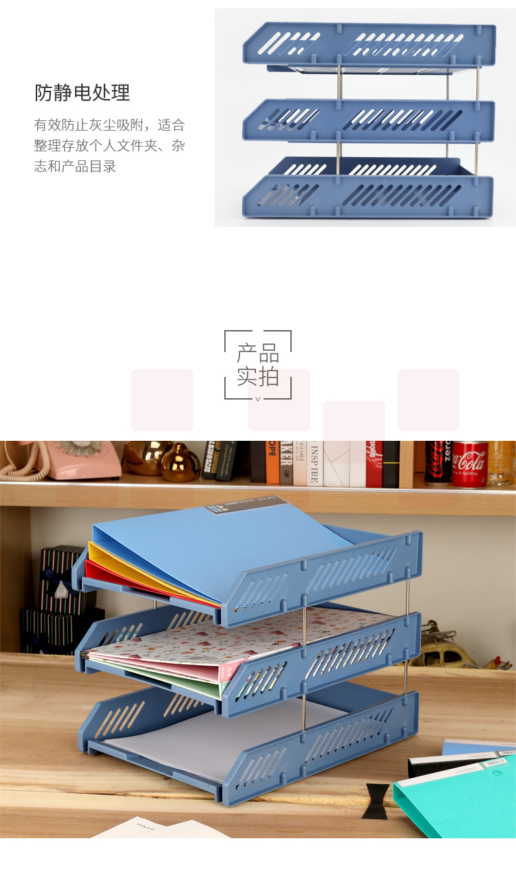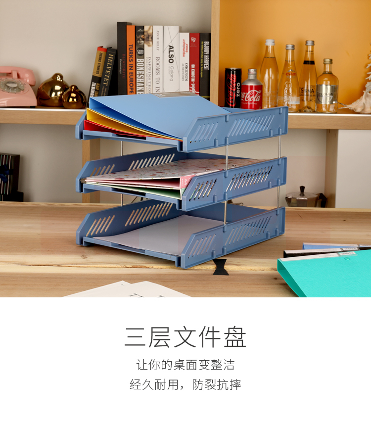 晨光(M&G) 三层横式文件架ADM94743加厚多层文件盘文件座办公收纳塑料架 蓝色5个装