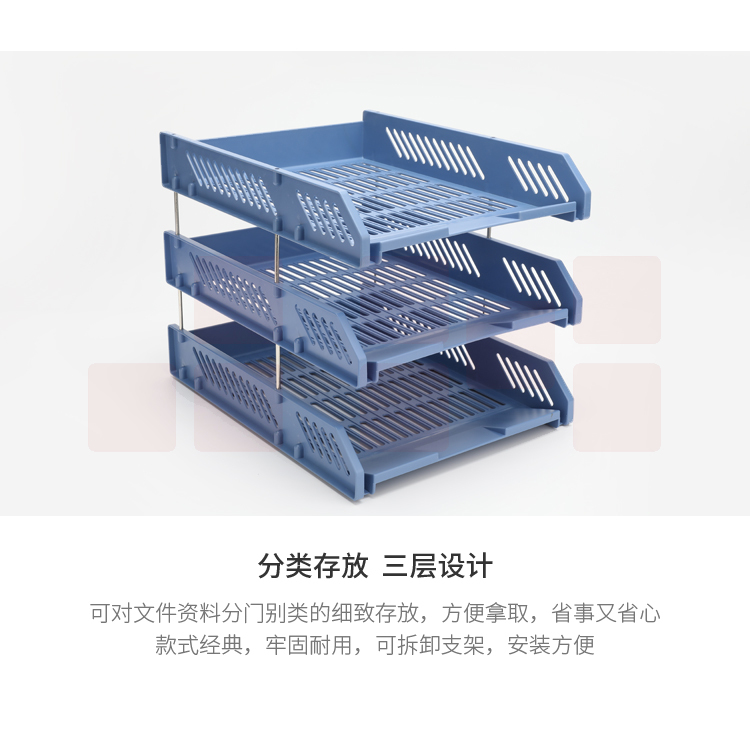 晨光(M&G)三层镂空收纳文件座 三层文件盘/文件框栏桌面文件置物架 ADM94743 蓝色