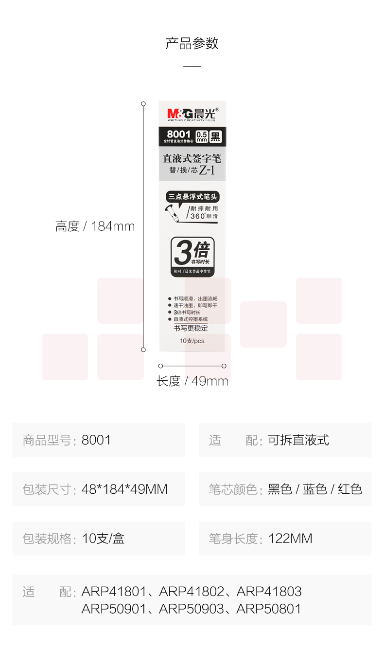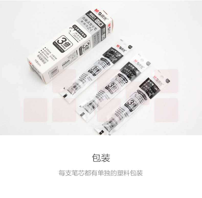 晨光0.5mm黑色直液式速干中性笔芯 替芯 优品系列水笔芯 10支/盒8001