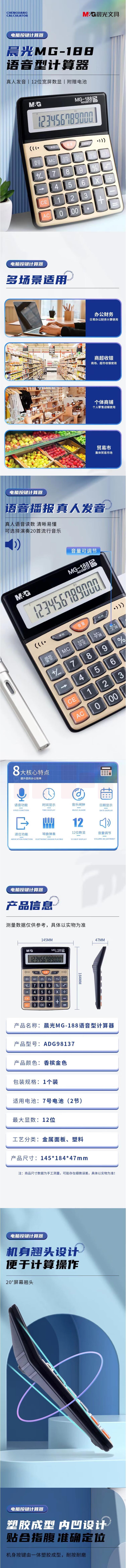 晨光(M&G)语音型金色金属面板计算器桌面计算机 12位大屏幕计算器 ADG98137