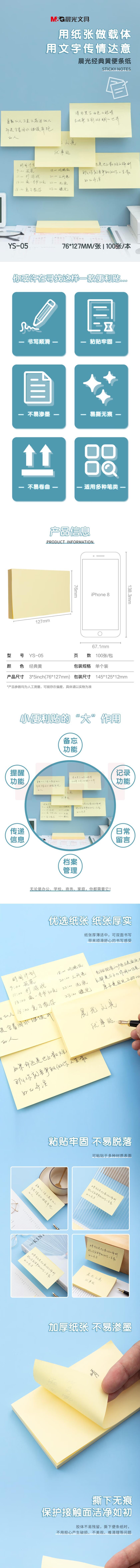 晨光100张便利贴 便签纸留言贴 76*127mm记事贴优事贴YS-05