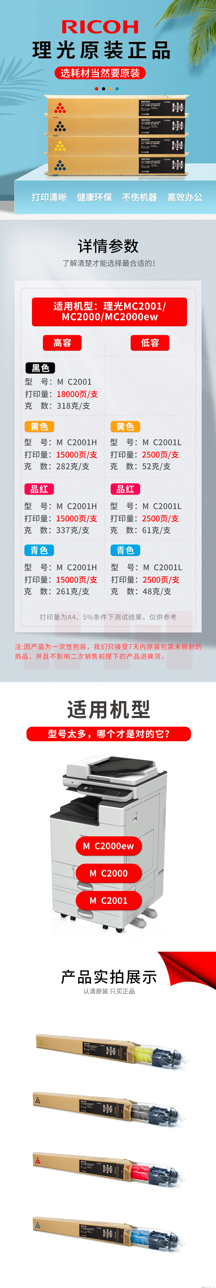 理光 MC2001L 原装 黄色粉盒适用MC2000/MC2001/MC2000ew复印机碳粉盒(2500页)