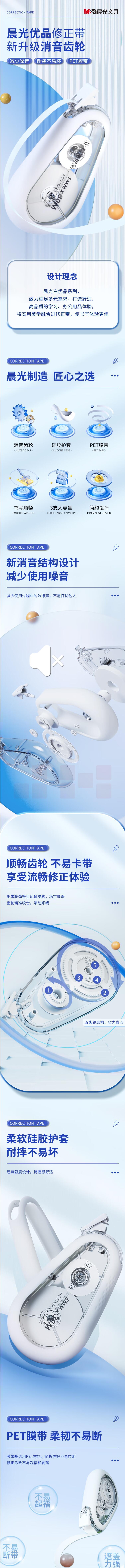 晨光(M&G)30m*5mm耐摔消音修正带 优品硅胶护套涂改带 强遮盖改正带 ACT79801
