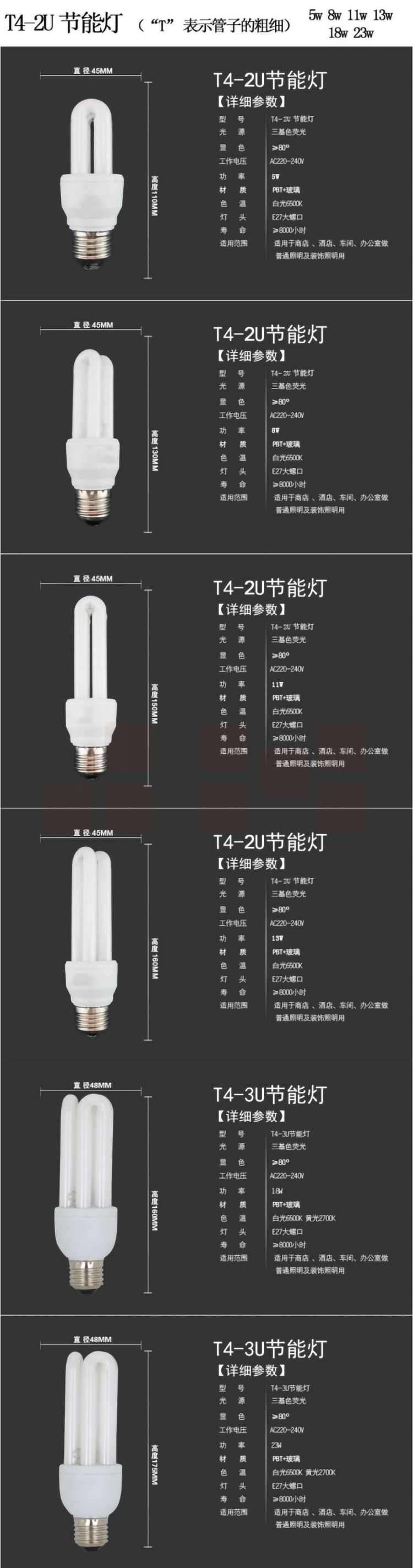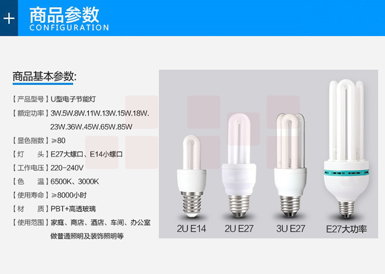 佛山照明 18W节能灯泡3U型三基色荧光E27螺口白光6500K