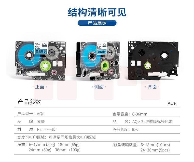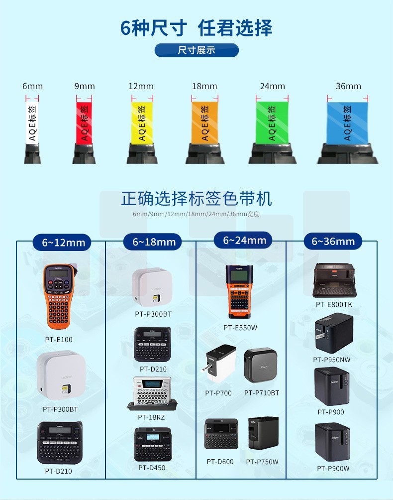爱墨 适用兄弟标签机PT系列色带 白底黑字 9MM 其他颜色备注