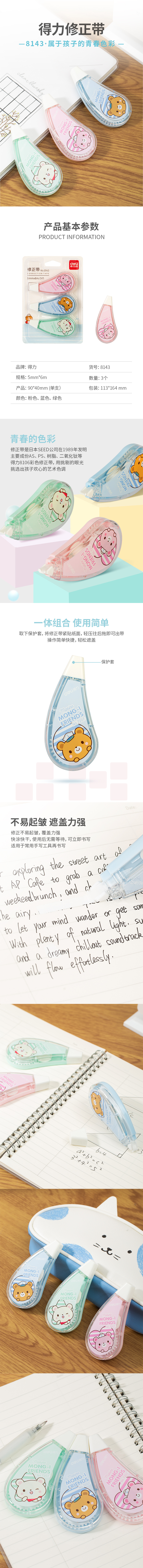 得力8143修正带涂改带 5mm*6米 组合套装 (3个/卡)