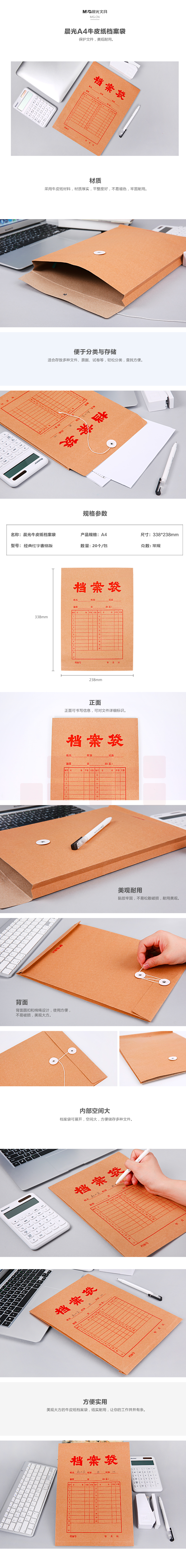 晨光 A4档案袋25mm 牛皮纸文件袋 APYRA609(20个/包)