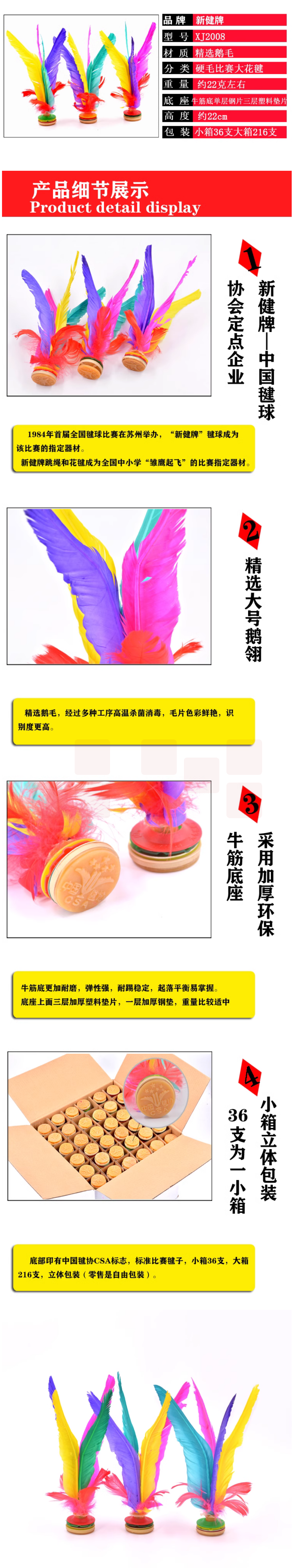 新健牌 XJ2008彩色鹅毛毽子 毽球比赛大花毽 货号:LJ