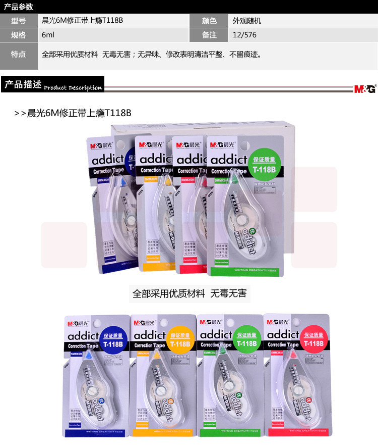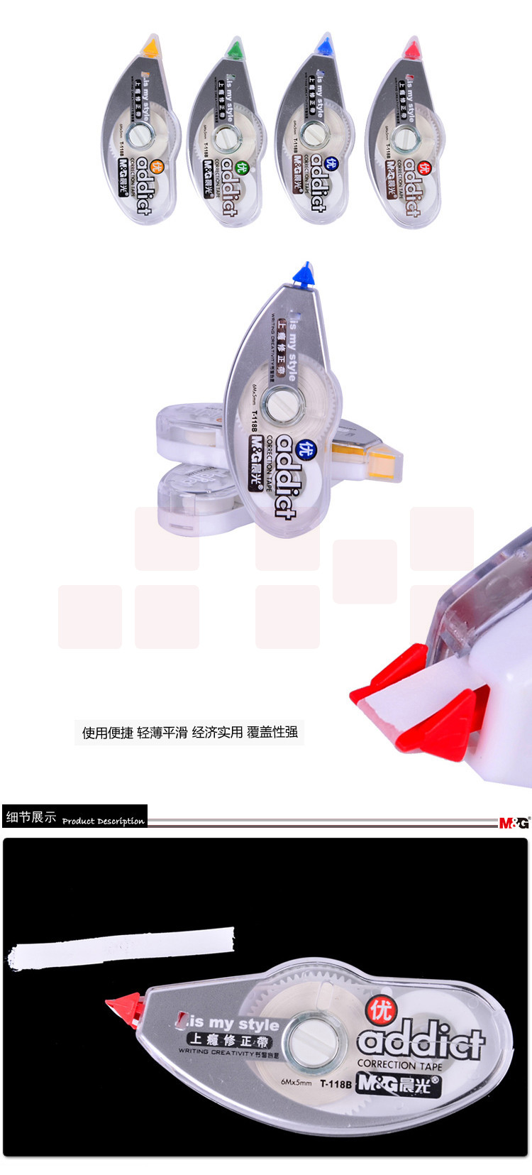 晨光 T-118B修正带 涂改带 6M*5MM 修改带 改正带 12个/盒