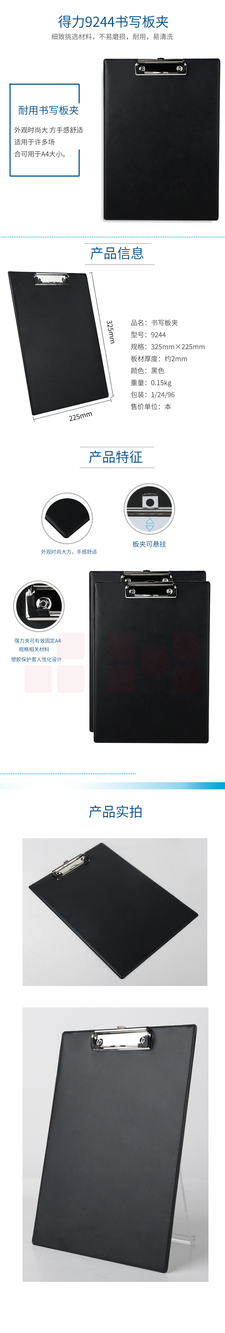 得力 9244 文件夹板A4木板夹 书写板夹 皮革夹板 黑色