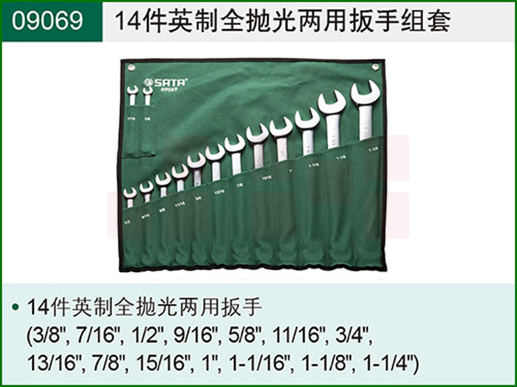 世达(SATA)14件英制全抛光两用扳手组套 货号09069