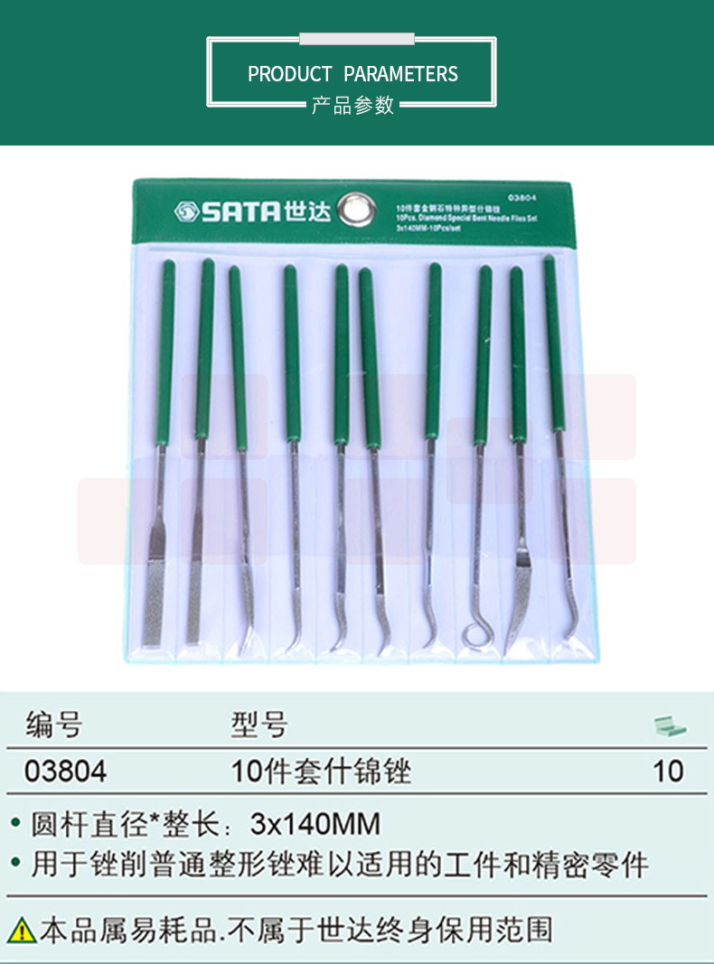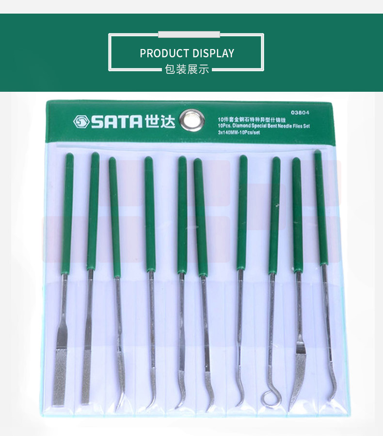 世达(SATA)10件套金刚石特种异型什锦锉3x140MM/金刚石锉削什锦三角锉刀金属钢锉03804