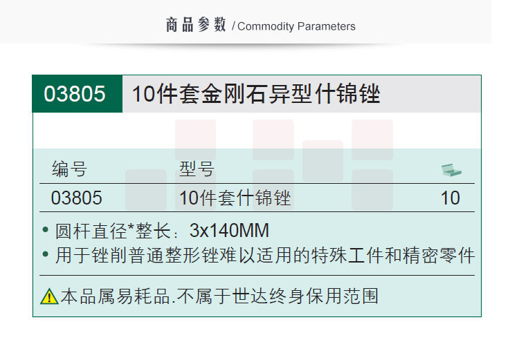 世达(SATA)10件套金刚石异型什锦锉 3×140MM 货号03805