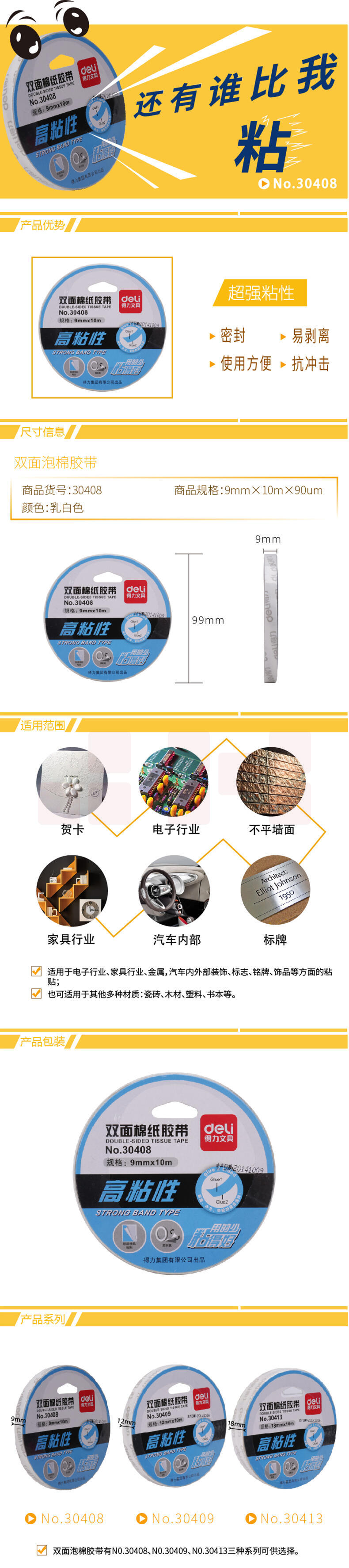 得力 30408 双面胶带9mm*10m*90um(白色)1卷