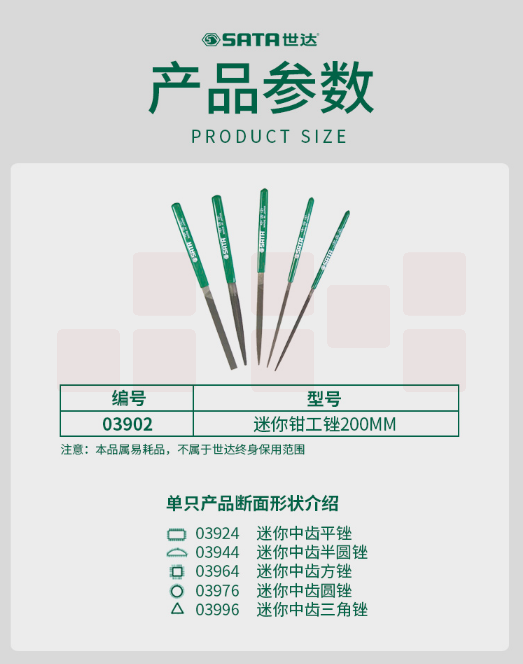 世达(SATA)5件套迷你钳工锉200MM 货号03902