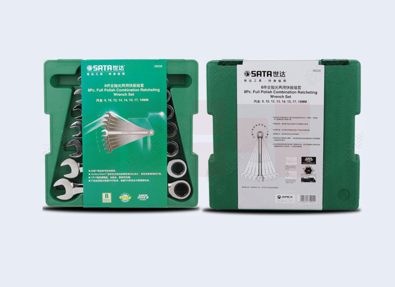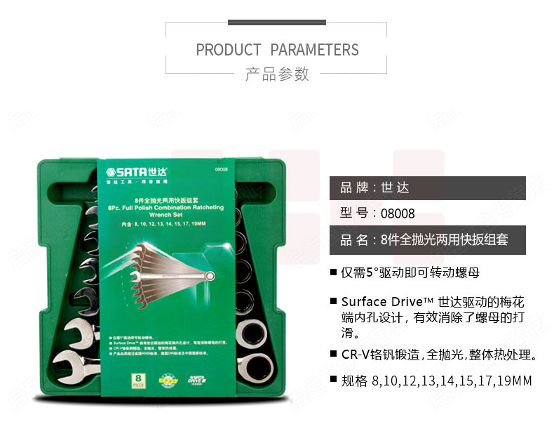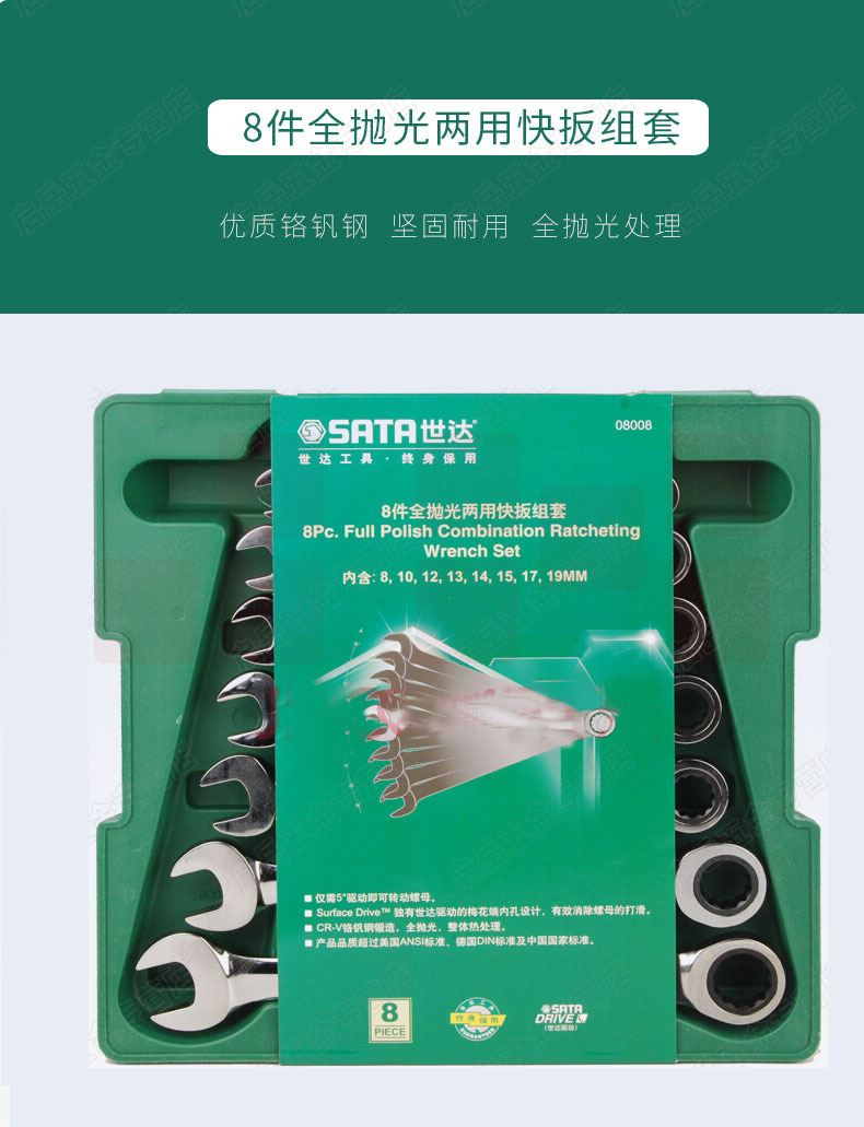 世达(SATA) 8件全抛光两用快扳组套/组合开口快速扳手套装套筒两用汽车 08008