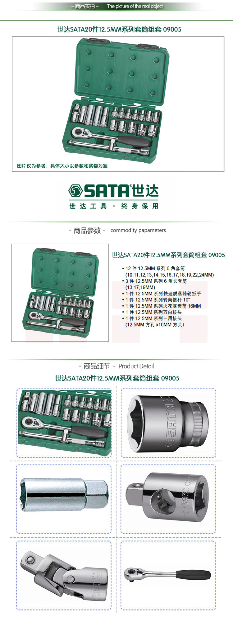 世达(SATA)20件12.5MM系列套筒组套货号09005
