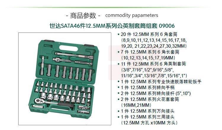 世达(SATA)46件12.5MM系列公英制套筒组套 货号09006