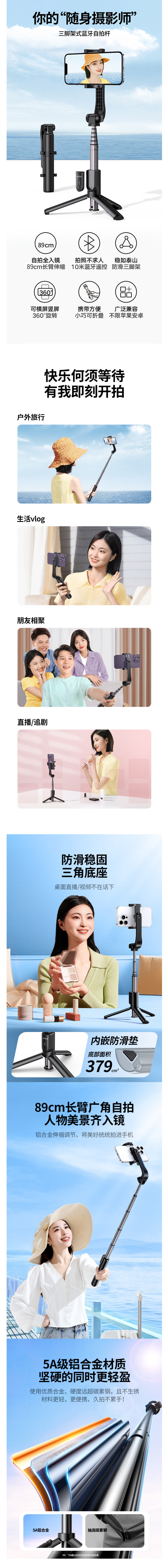 绿联 自拍杆 手机支架多功能三脚架 50758