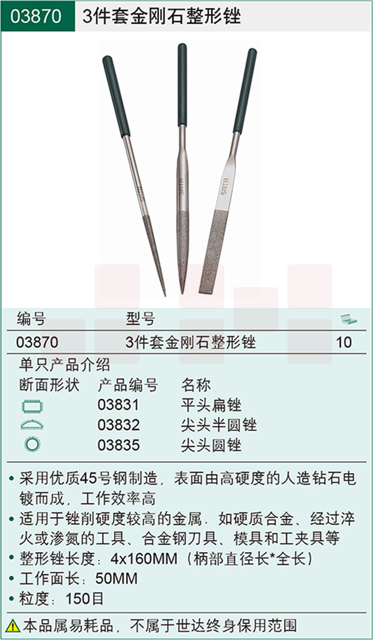 世达(SATA)3件套金刚石整形锉4x160MM货号03870