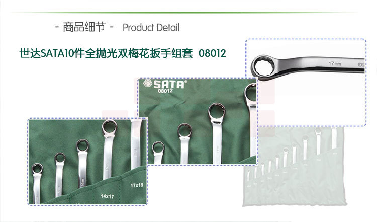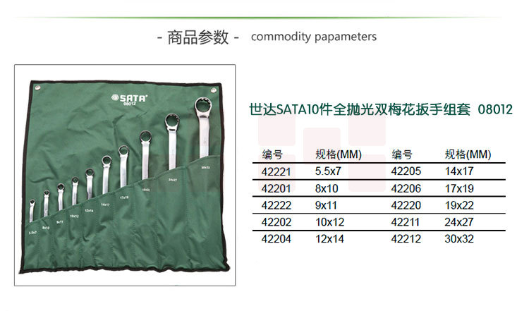 世达(SATA)10件全抛光双梅花扳手组套 货号08012