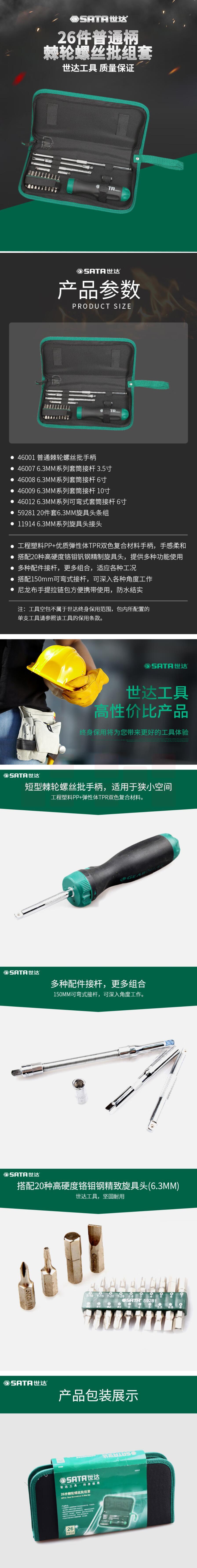 世达 螺丝刀套装棘轮螺丝批十字一字星形26件棘轮螺丝批组套09343