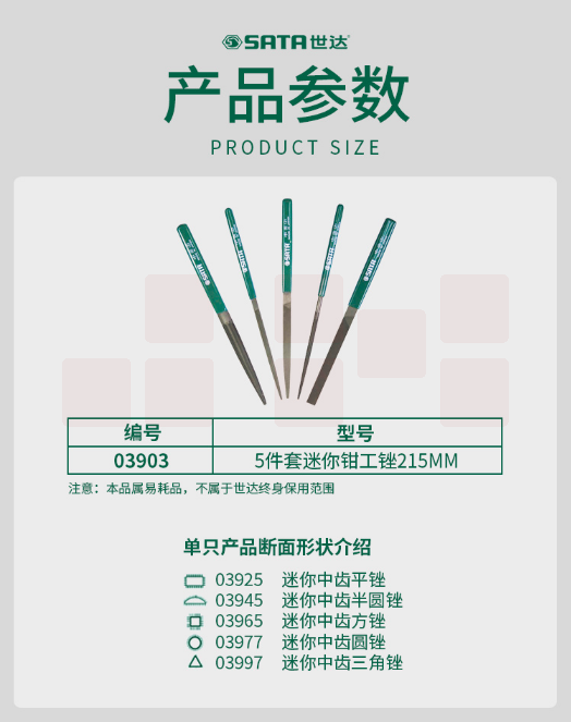 世达(SATA)5件套迷你钳工锉215MM 货号03903