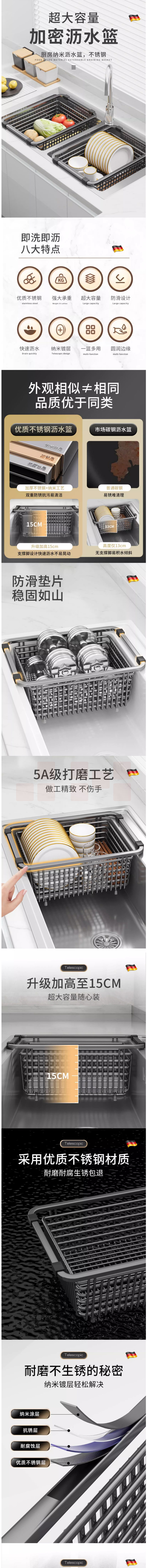 沥水篮 厨房水槽沥水架 304不锈钢单槽菜篮 37*23cm 货号:LJ