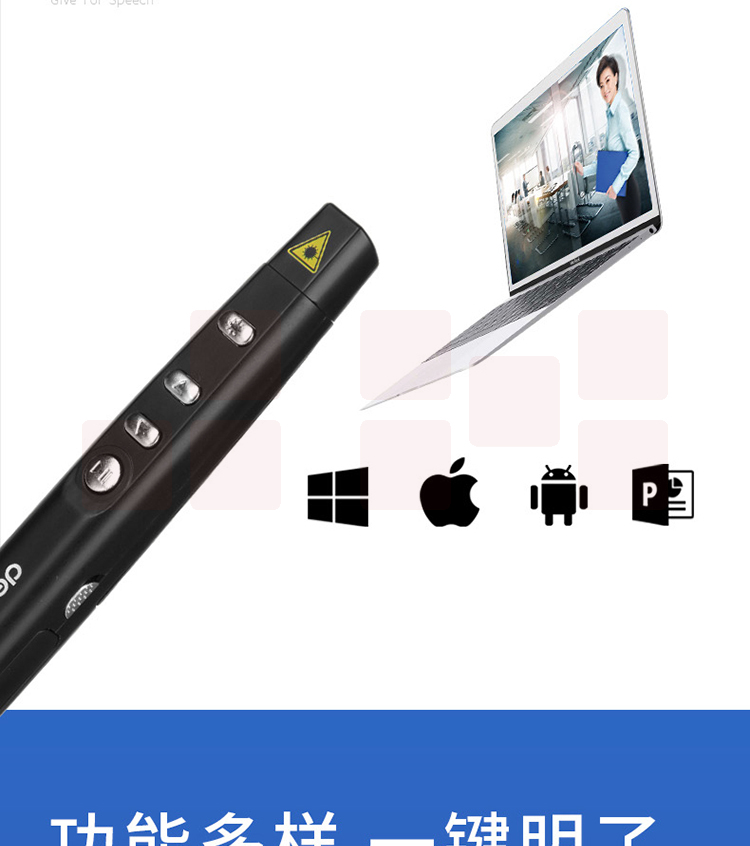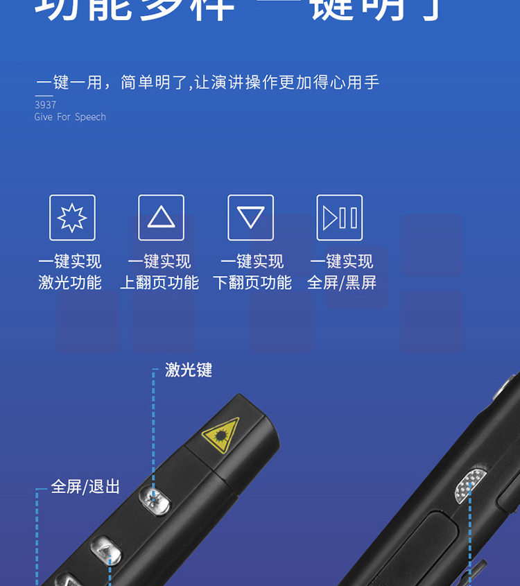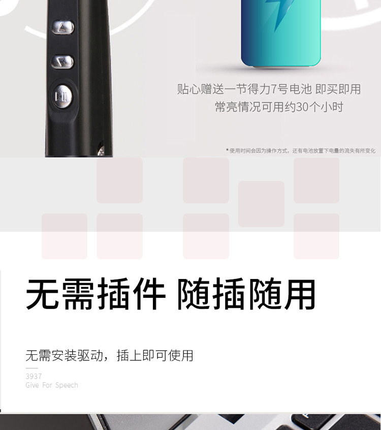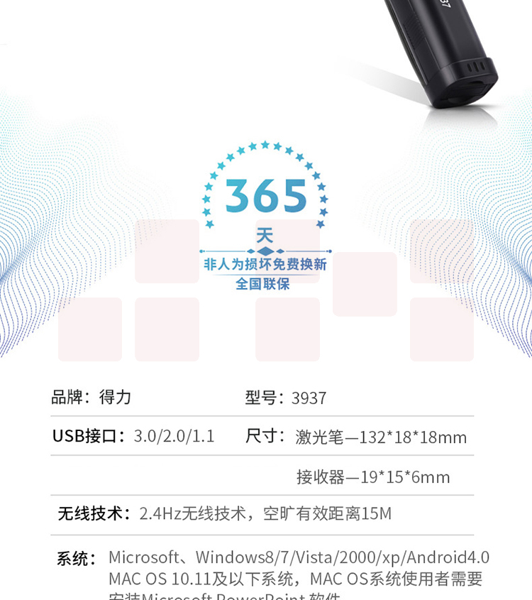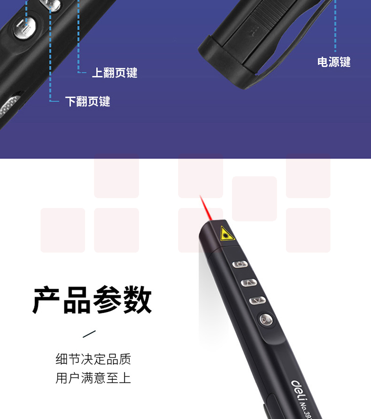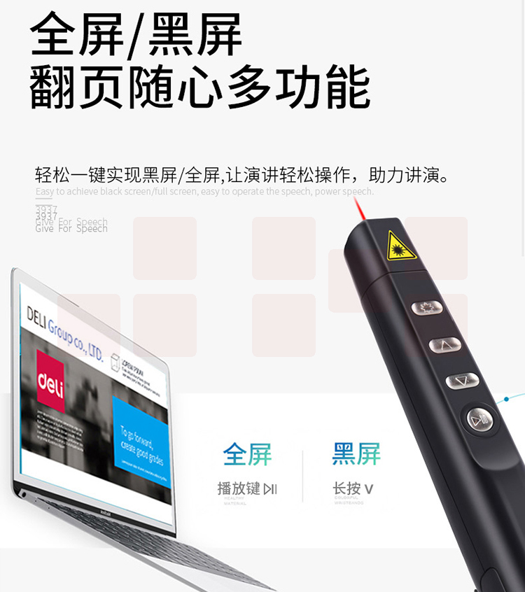 得力(deli)红光激光笔翻页笔200米投影笔电教笔教鞭ppt翻页笔红外线笔激光笔3937