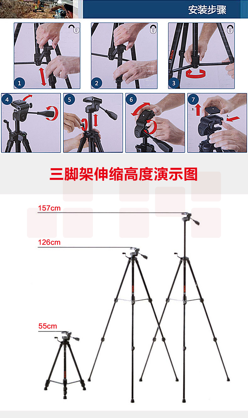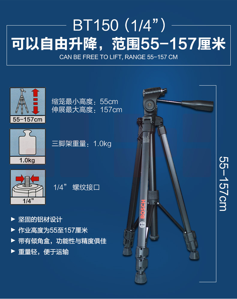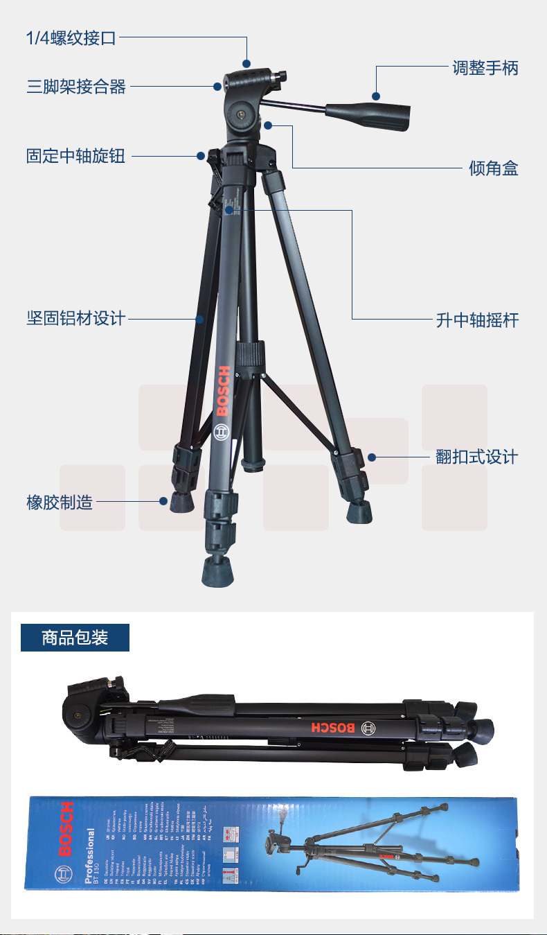 博世(BOSCH)水平仪三脚架原装支架 水平仪支架 测距仪支架BT150-5/8(水平仪支架) G20160976