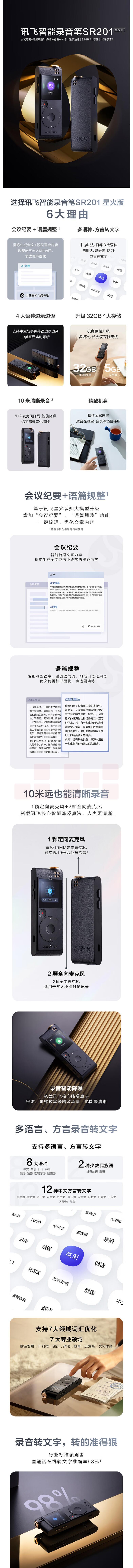 科大讯飞智能录音笔SR201星火版 免费转写 触摸屏融合按键操作 专业降噪 32G+云储存 星空灰