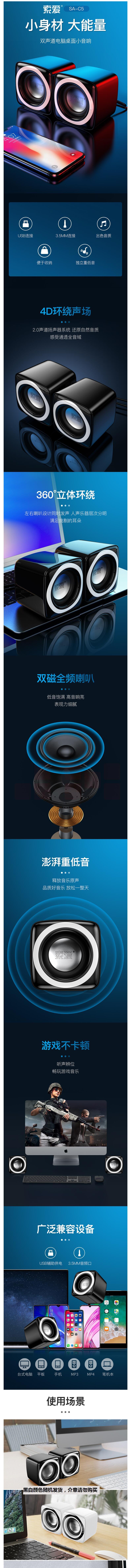 索爱 SA-C5 音响 电脑迷你小音箱 桌面有线低音炮