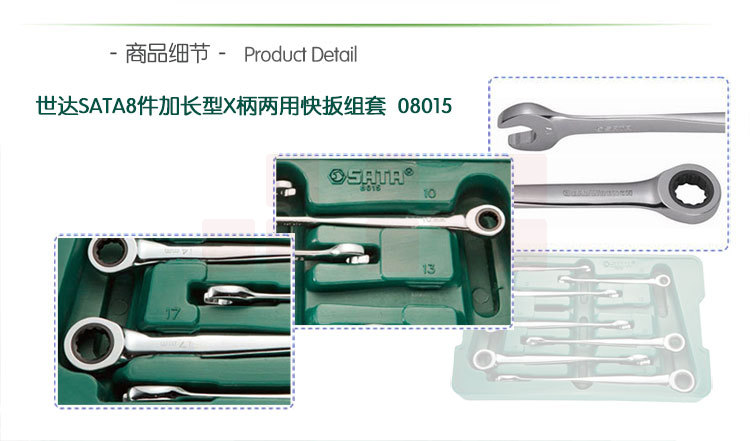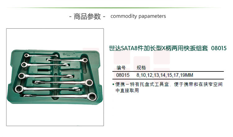 世达(SATA)8件加长型X柄两用快扳组套货号08015