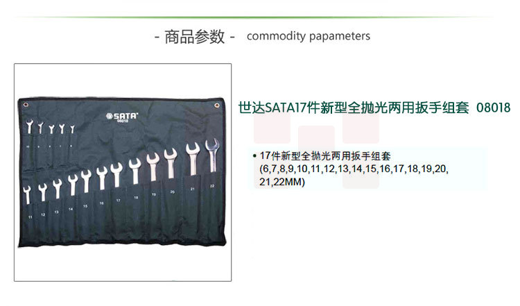 世达(SATA)17件新型全抛光两用扳手组套货号08018