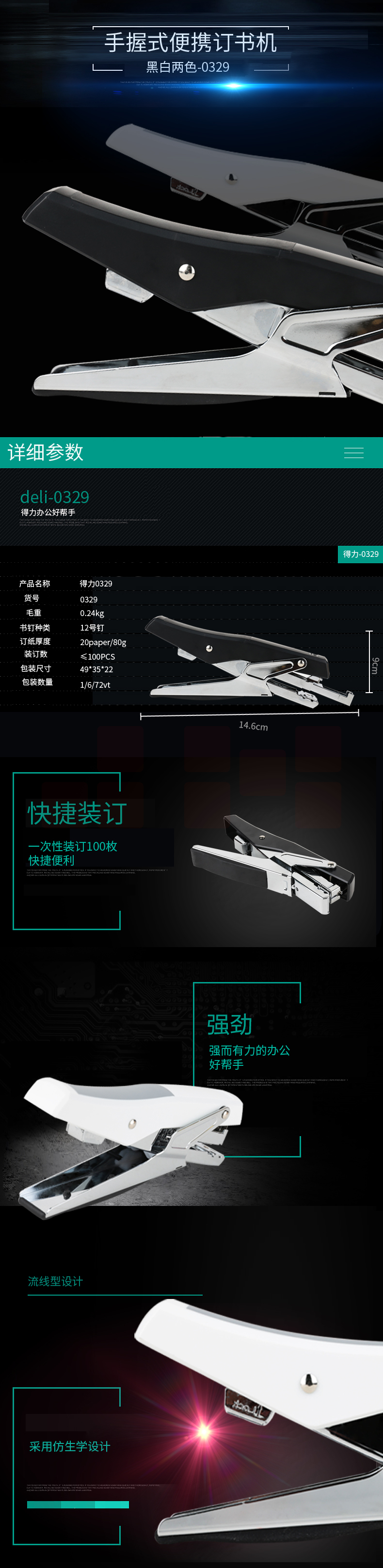 得力(deli)手握订书机 省力订书器 省力型订书器 黑 0329