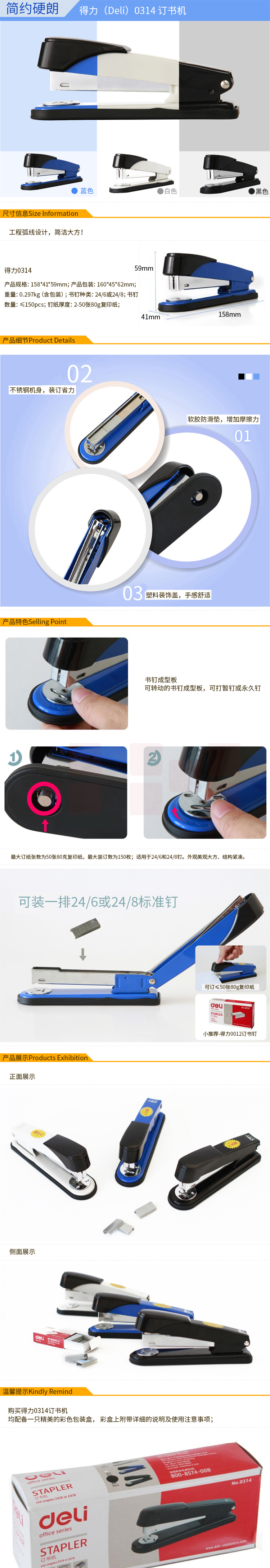 得力 订书机 0314 12# 24/6-26/6-24/8 50页/80g 50页 1/6/60 黑色