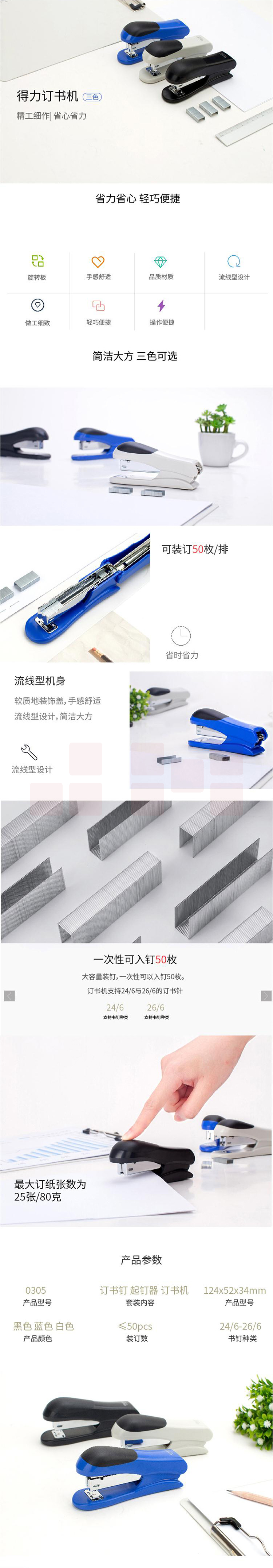 得力(deli)12#轻巧便携订书机 25页办公桌面订书器白色0305