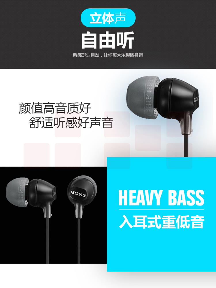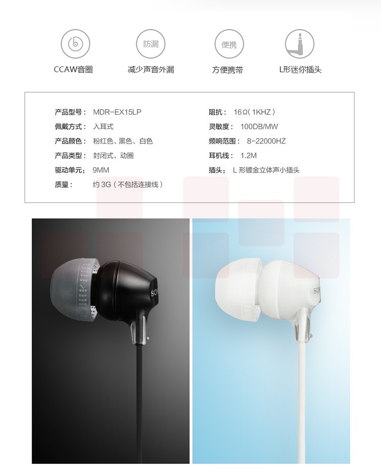 索尼(SONY) MDR-EX15LP 小巧入耳式耳机,佩戴舒适 半透明果冻色渐变机身 白色