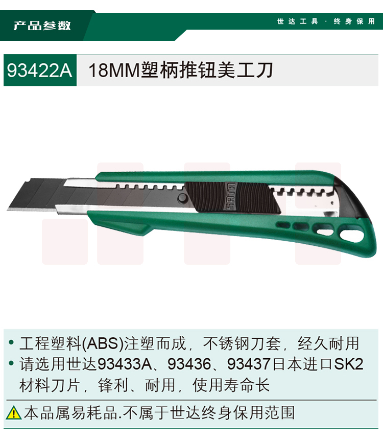 世达(SATA)锌合金美工刀13节9x80MM 93424A