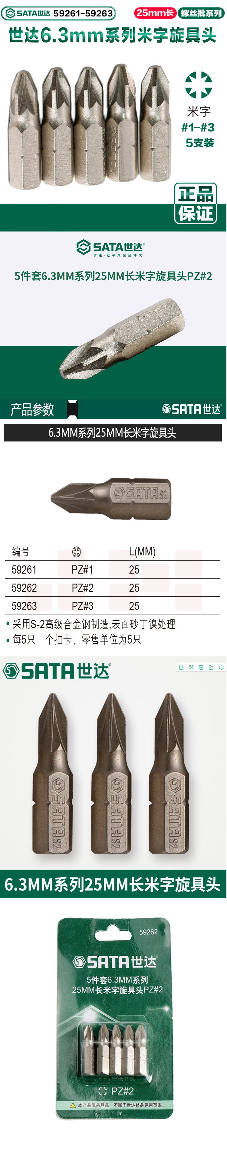 世达 5件套6.3MM系列25MM长米字旋具头PZ#3 59263-螺丝批头