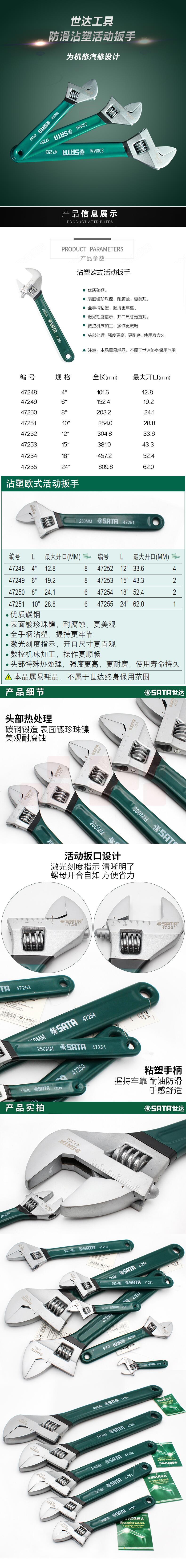 世达 47250沾塑欧式活动扳手8寸活动扳手