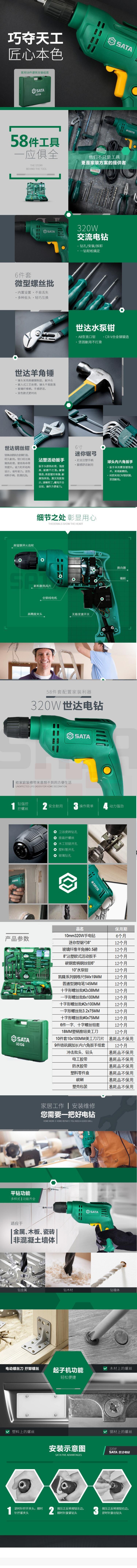 世达 58件电钻组套 05156 家用工具箱多功能320W手电钻套装