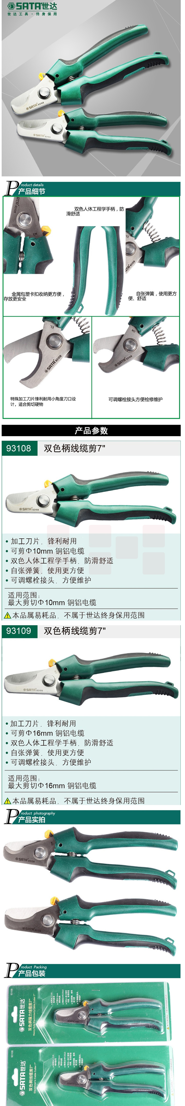 世达 93108 双色柄线缆剪7英寸