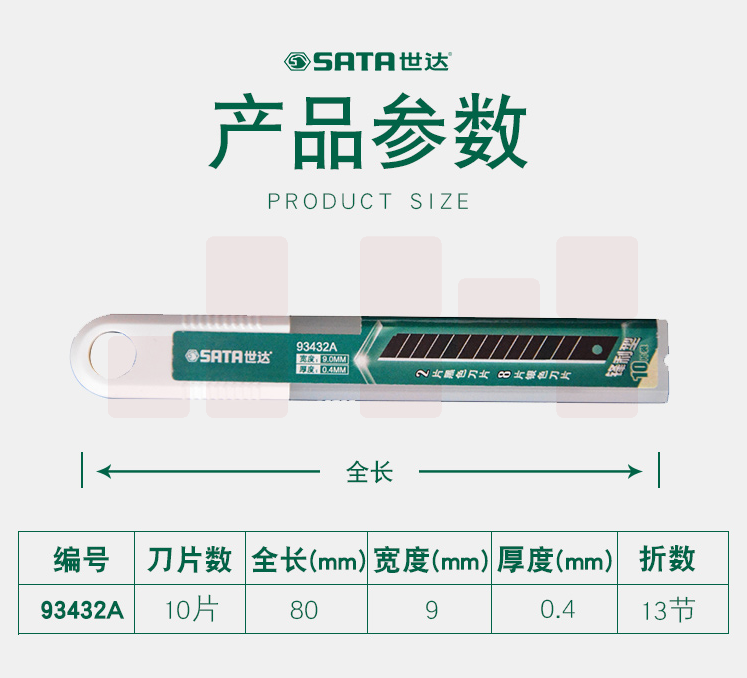 世达(SATA)10件套美工刀刀片13节9x80MM 93432A
