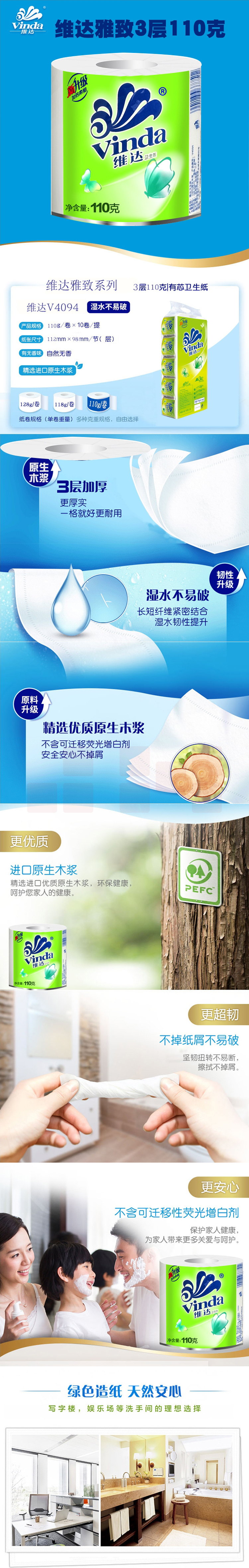 维达雅致雅惠卷纸 V4094 112*98mm 3层 110g/卷 10卷/条