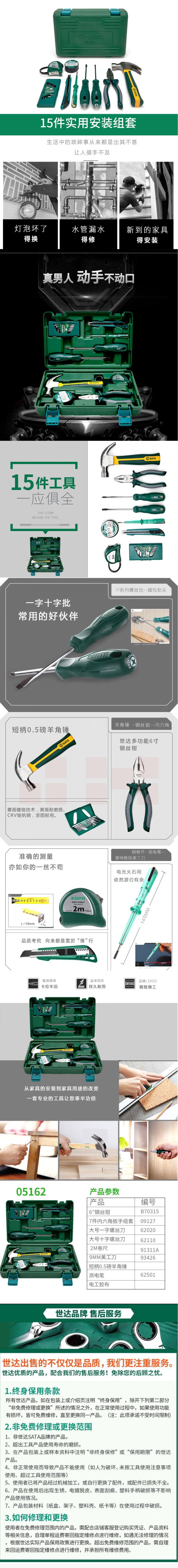 世达 05162 工具套装15件螺丝刀扳手内六角锤子组套工具工具箱