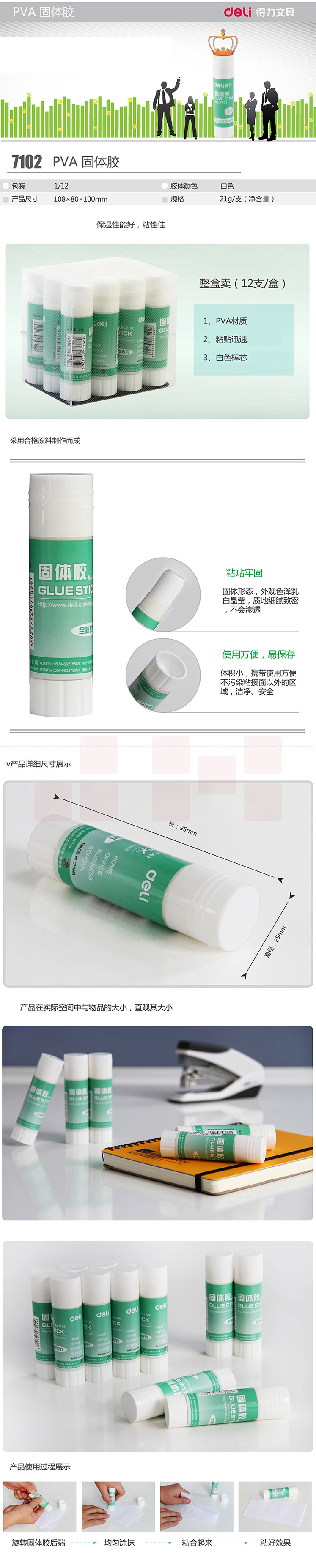 得力(deli)21g高粘PVA固体胶棒12支装 速干可水洗 DIY手工粘胶 7102