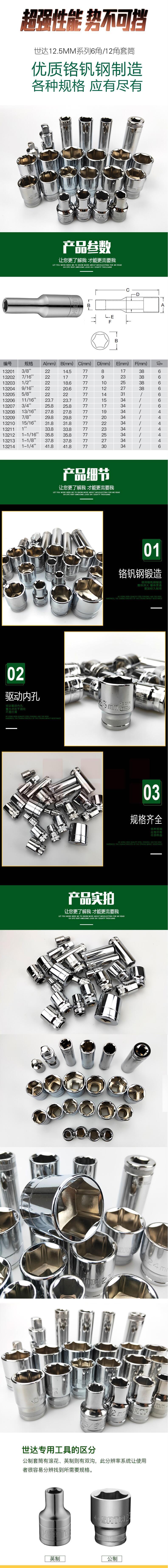 世达(SATA) 13201 12.5MM系列英制6角长套筒3/8"