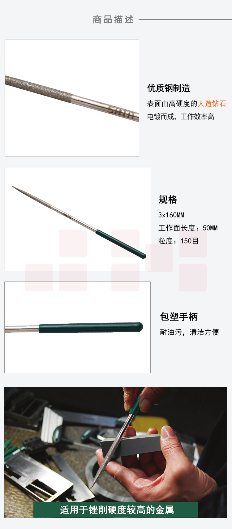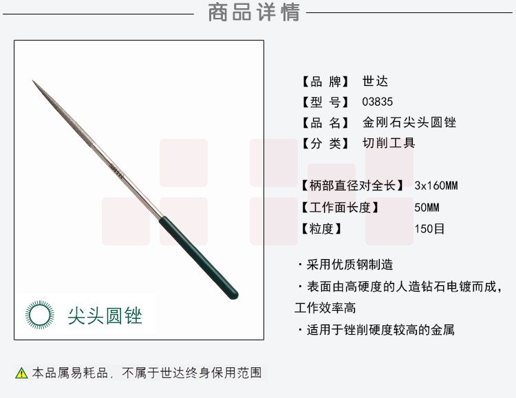 世达(SATA)金刚石尖头圆锉4x160MM/刀尖头圆锉金钢锉刀 03835